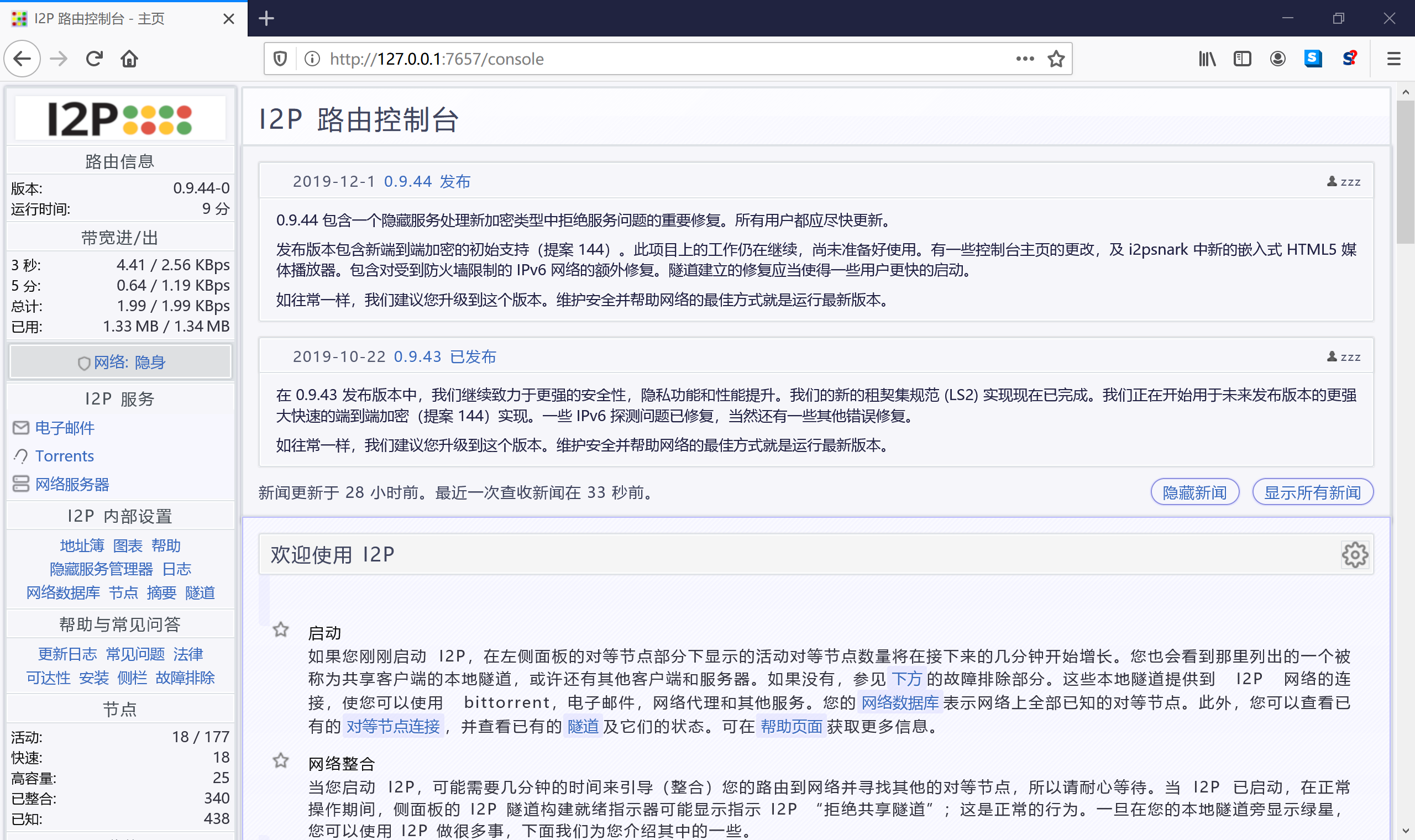 I2P 的控制台有两个长得很像的页面。
