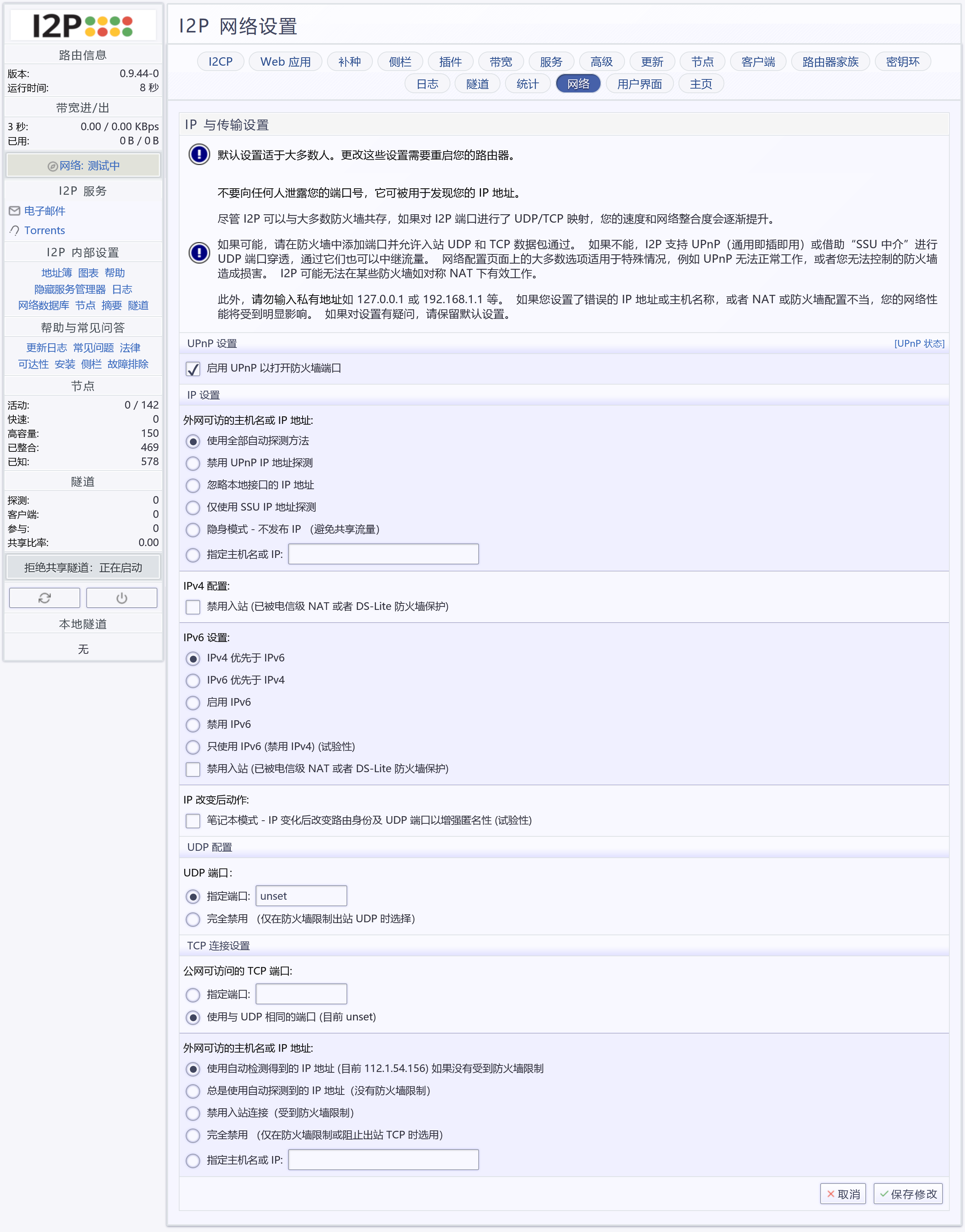 在这个页面你才可以进一步配置 I2P。