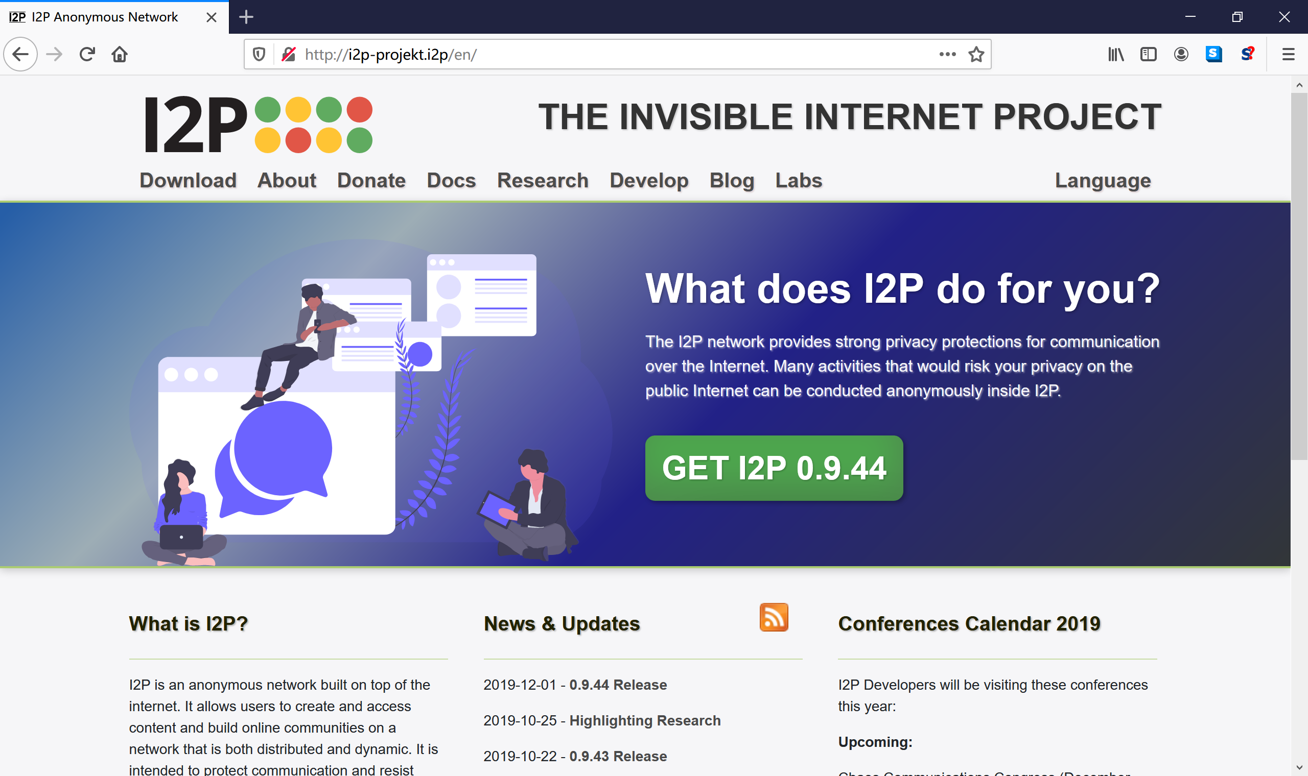 您可以在 Firefox 地址栏尝试访问 I2P 官方项目网站 http://i2p-projekt.i2p。如果能成功访问,说明您成功接入了 I2P 暗网!