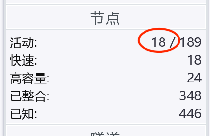 在侧边栏的结点栏目中,如果看到“活动”的结点超过8个,您就可以尝试访问暗网网站了。如图:
