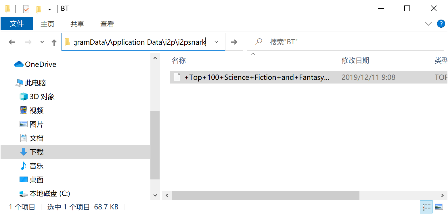 另外一种方式是把下载的种子复制到“数据目录”文件夹中。文件夹路径已经在页面中显示。默认文件夹为 C:\ProgramData\Application Data\i2p\i2psnark。打开 Windows 文件资源管理器 复制。如下图: