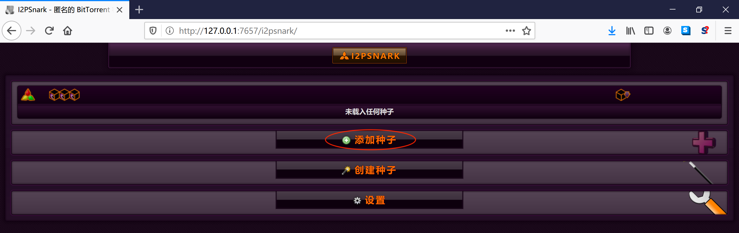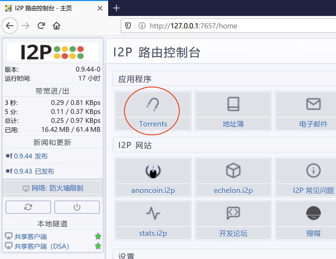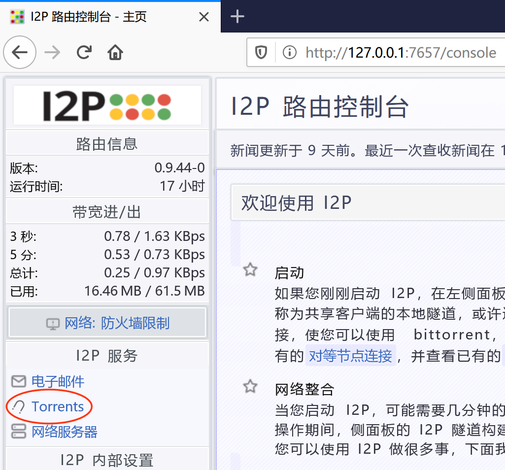 点击链接后,会出现 I2PSnark 的首页: