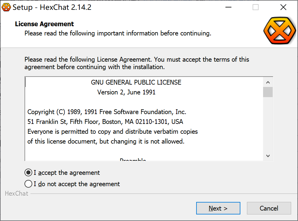 下载完成后双击打开 HexChat 2.14.2 x64.exe。如图: