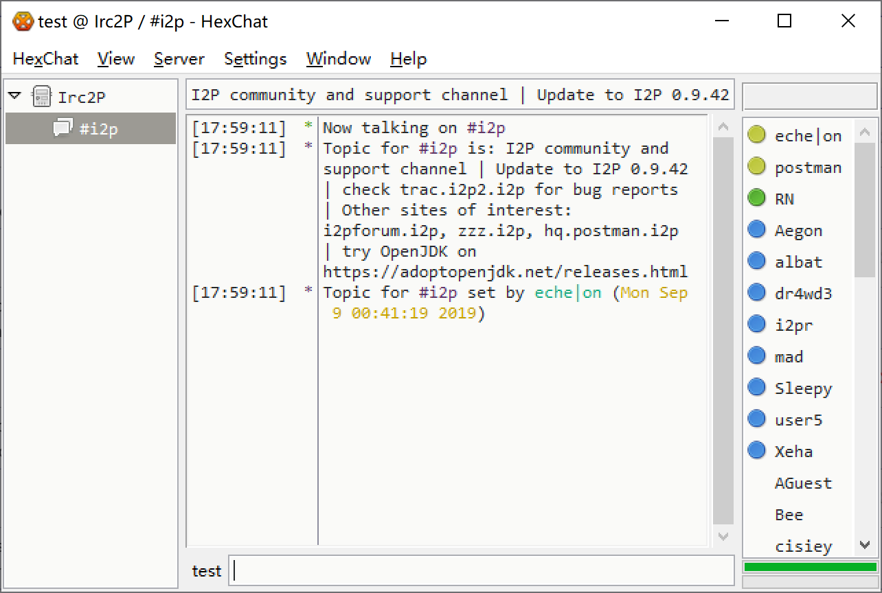 网络上有很多 IRC 客户端,这些客户端都可以连接到 Irc2P 服务器聊天。这里以 HexChat 为例介绍。