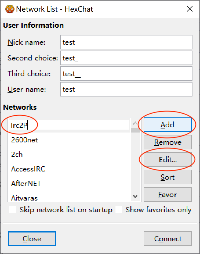 点击“Edit…”按钮,添加 Irc2P 网络的服务器: